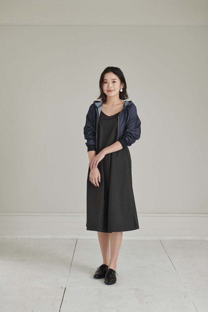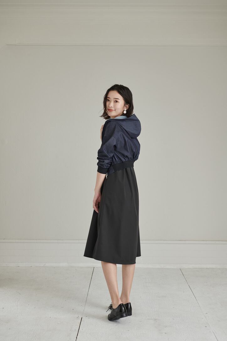Wジップファスナーなので表情を変えた着方もでき、モードにもカジュアルにも着ていただけます。同素材のデニムスカートとセットアップとして着ていただくコーディネートもおすすめです。