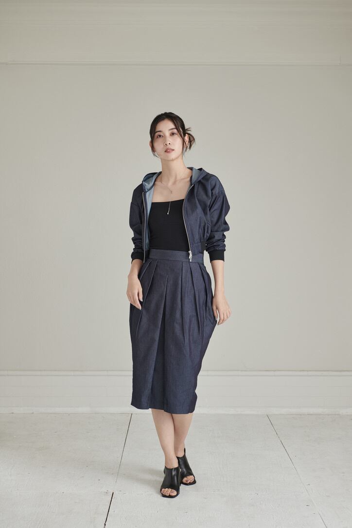 同素材のデニムパーカーとセットアップにしてもお楽しみ頂けます。
